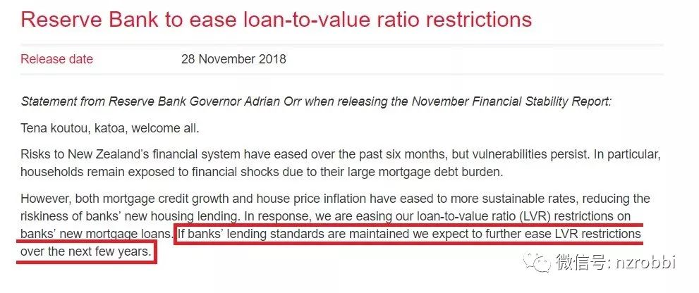 就在11月28,央行(RBNZ)宣布了从明年1月1号开始对贷款限速政策(LVR speed Limit)又进一步放松。昨天我也在朋友圈和公众号答应了大家会对这次政策进行一点分析。所以现在就和大家聊聊自己的一些个人见解。
